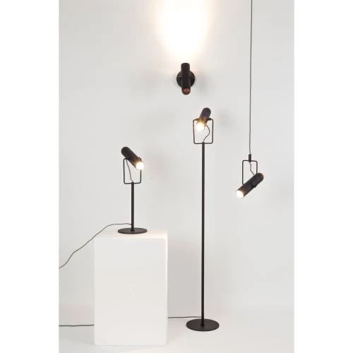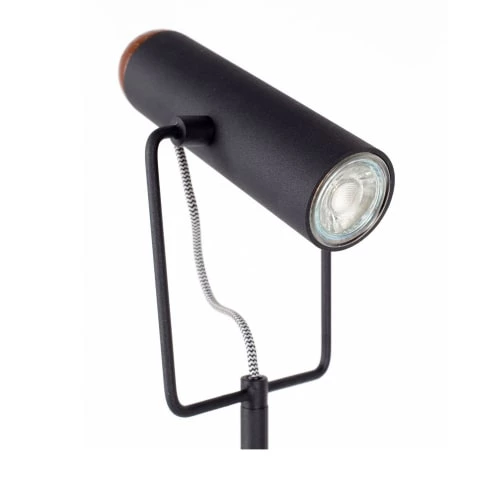 Maisons Du Monde Lampadaires Lampadaire En Bois Noir, Gris Et Beige, Abat-jour En Lin H154